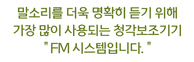 FM 시스템은 청각장애를 가진 아이들과 성인들이 소음이 있는 상황에서 말소리를 잘 이해해지 못하는 상황에 필요한 청각보조기기 입니다.